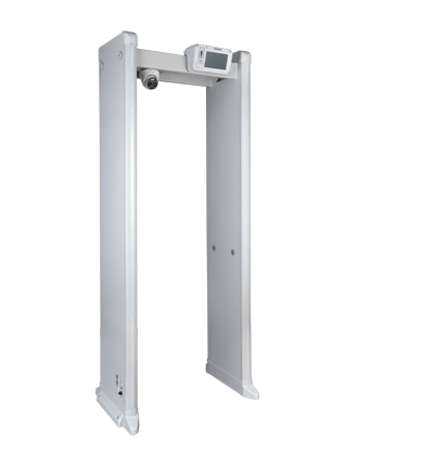 DAHUA DHI-ISC-D118-T - Arco detector de metales de 18 zonas con medición de temperatura y cámara térmica. Pantalla de 3.5", tecnología de sensor VOx sin enfriamiento, ajuste automático de frecuencia y 255 niveles de sensibilidad configurables.