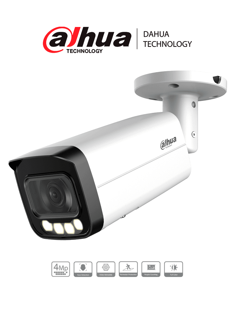 DAHUA DH-IPC-HFW5449TP-ASE-LED-0280B-S2 Cámara IP Bullet Full Color de 4 MP/ Lente de 2.8 mm/ 40 m ir/ Micrófono Integrado/ Detección Facial/ Conteo de Personas/ Protección Perimetral/ SMD 3.0./ ePoE/ IP67/ E&S de Alarma/ Ranura para Micro SD/AcuPick