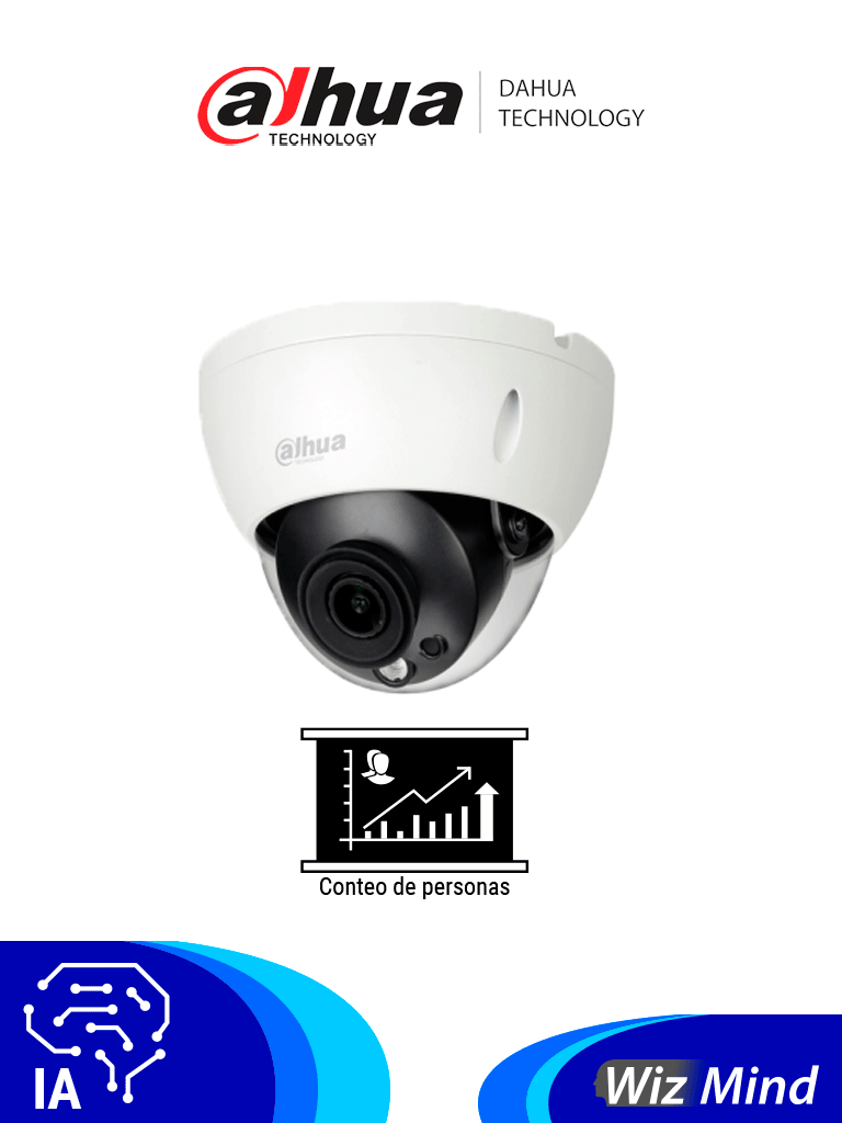 DAHUA DH-IPC-HDBW3841E-AS-S2 - Camara IP Domo Antivandalica 4k/ 8 Megapixeles/ WizSense/ Lente de 2.8 mm/ 107°/ Microfono integrado/ IR 30m / SMD 4.0/ AI SSA/ Ranura MicroSD/ PoE/ IP67/ IK10/ E&S de Alarma y Audio