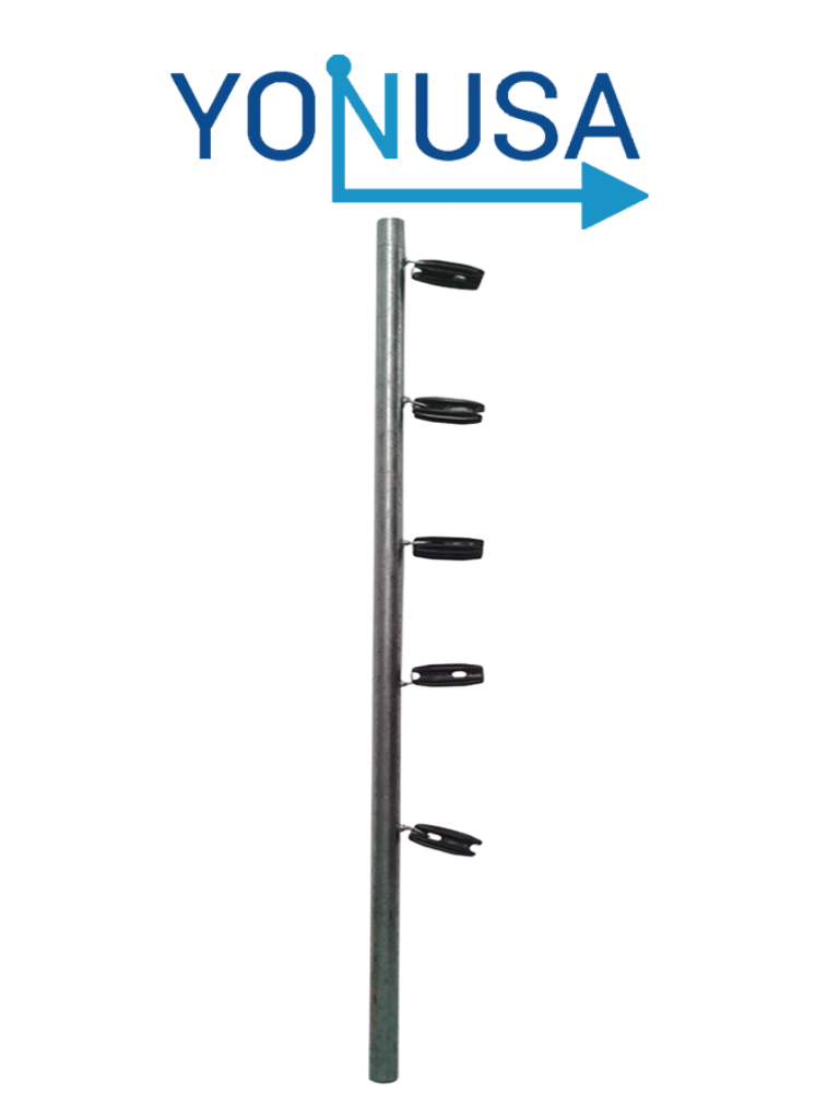 YONUSA TUBOAP101 - Poste de paso para cerco eléctrico, tubo con 5 aisladores de paso instalados/ Tubo de 1.20 mts. listo para instalación en campo