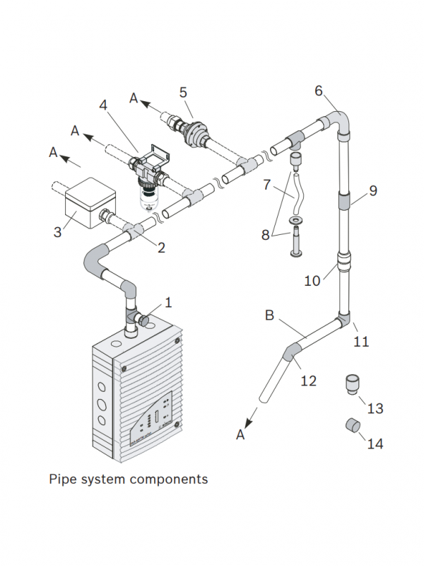 - Los sistemas de tuberías de aspiración se fabrican según las especificaciones de diseño con los componentes de tubería comunes, así como componentes para aplicaciones especiales, por ejemplo, separadores de humedad o barreras antideflagrantes.