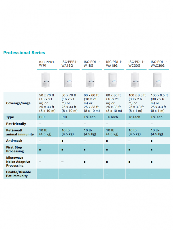 El detector PIR ISC-PPR1-W16 de la serie Professional ha sido diseñado para las aplicaciones comerciales en interiores. La tecnología de fusión de datos de los sensores garantiza que los detectores envíen condiciones de alarma basadas en información precisa. La tecnología óptica trifocal elimina los espacios sin cobertura y responde de forma eficaz contra los intrusos. La potente combinación de características únicas de la serie Professional proporciona un nivel de detección superior y elimina prácticamente las falsas alarmas. La carcasa de protección en dos piezas con autobloqueo, la burbuja de nivel orientable integrada, la altura de montaje flexible y los tres soportes de montaje opcionales simplifican la instalación y reducen el tiempo de un mantenimiento.