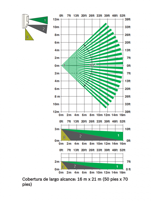 - Cobertura de 16 m x 21 m (50 pies x 70 pies), seleccionable de 8 m x 10 m (25 pies x 33 pies).