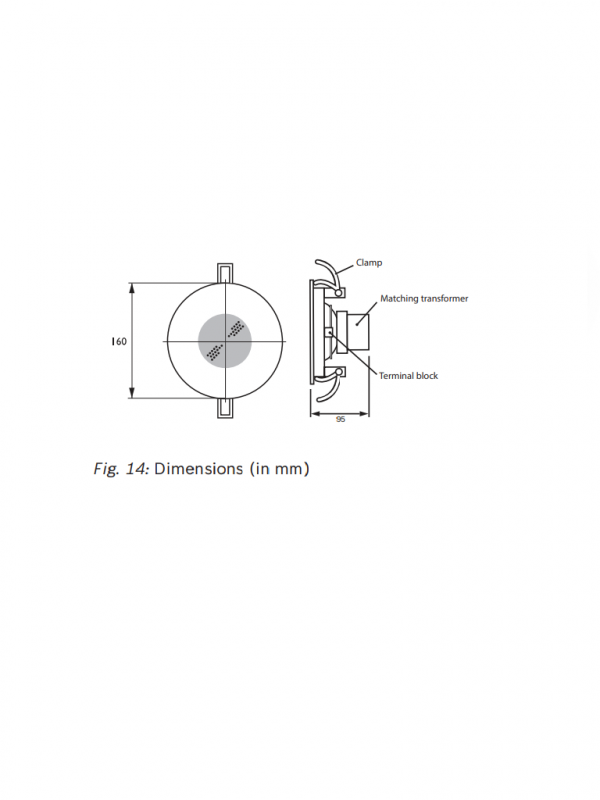 El altavoz cuenta con un gran ángulo de apertura, lo que significa que se requieren menos unidades para cubrir un área determinada. El amplio intervalo de frecuencias proporciona una mejor reproducción de voz y música. La unidad se suministra con un transformador adaptado 100 V con derivaciones en los devanados primarios para ofrecer la potencia nominal máxima, media potencia, un cuarto de potencia o un octavo de potencia.