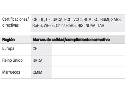 La información sobre los detalles del registro está disponible con cada envío o en el catálogo de productos en línea de Bosch. Este nivel de servicio no se puede proporcionar en todos los países.