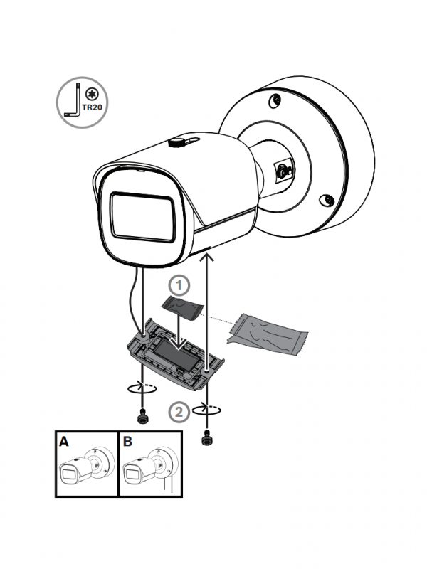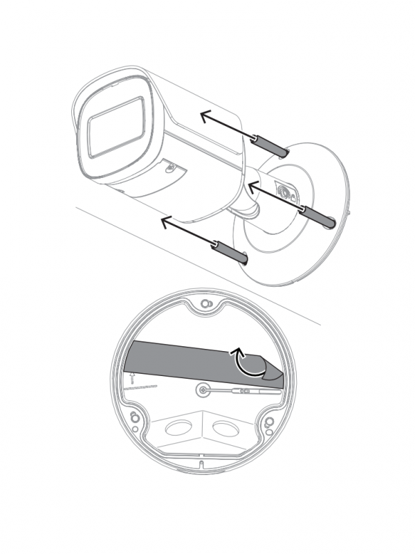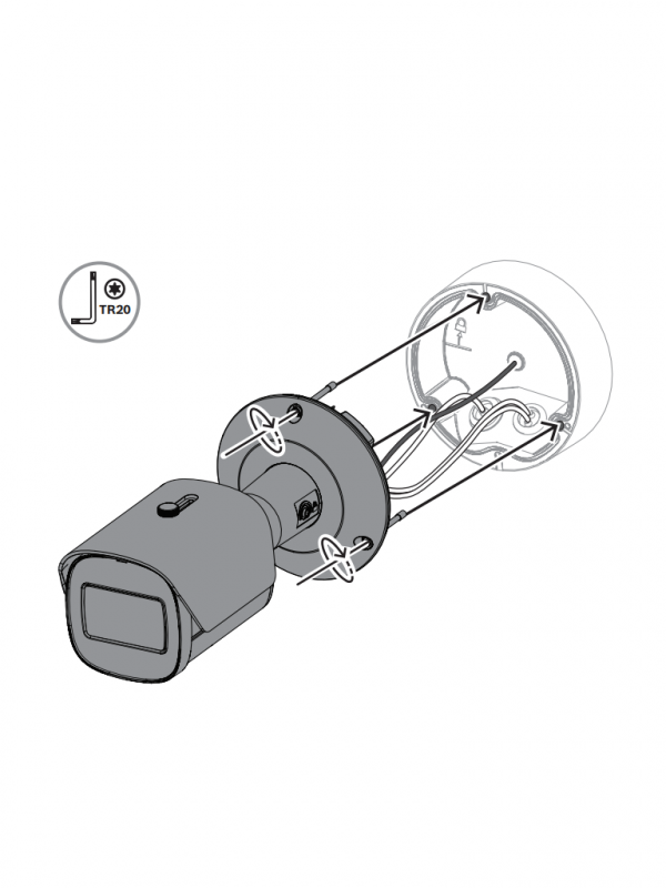 La cámara NBE-5703-AL utiliza el concepto de eficacia probada de instalación en tres pasos. La placa de montaje dispone de varios patrones de agujeros para la instalación en cajas eléctricas (cuadradas de 4 pulg. y dos entradas) y en los accesorios universales de Bosch. La caja trasera se puede acoplar con un sencillo giro y clic. Todos los cables se pueden conectar en la caja trasera.
