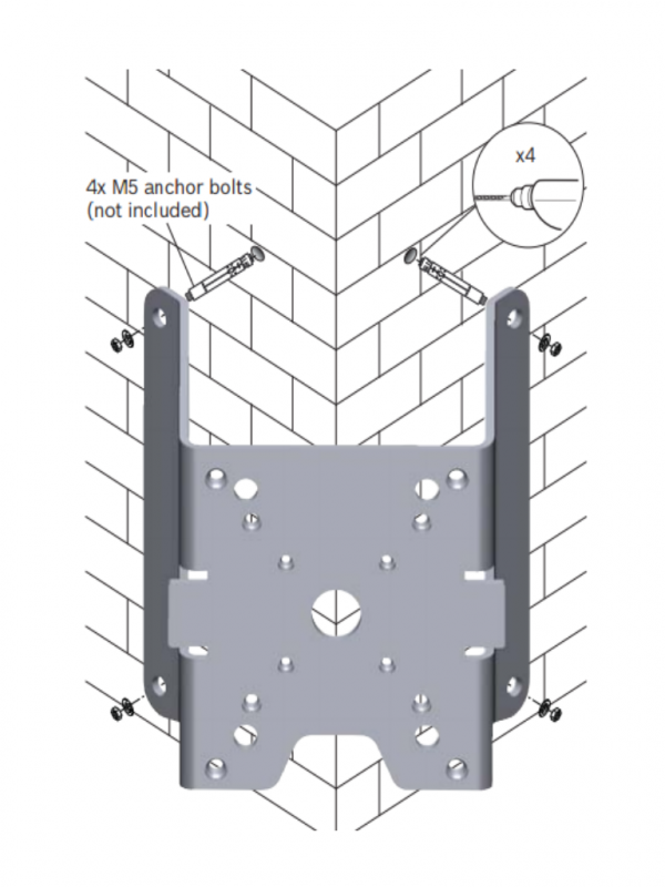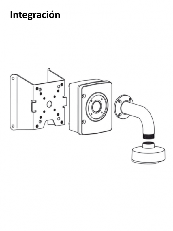 Este adaptador para montaje en esquina permite la instalación en esquinas externas. Es una solución segura y robusta para montar cámaras junto con los accesorios siguientes. Combinaciones de accesorios universales Es una solución segura y robusta para montar cámaras junto con los accesorios siguientes.