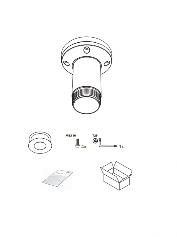 Es una solución segura y resistente para montar cámaras directamente en un techo o para utilizarla en combinación con: