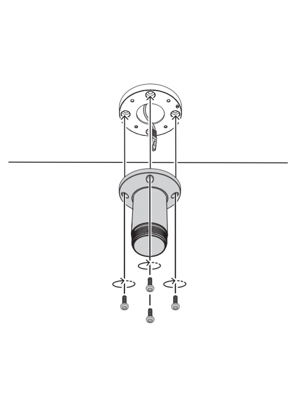 El soporte para montaje suspendido corto permite instalar una cámara suspendida de un techo. El soporte contribuye a facilitar la gestión de los cables o se puede combinar con una caja de montaje de superficie adicional para realizar conexiones con conductos.