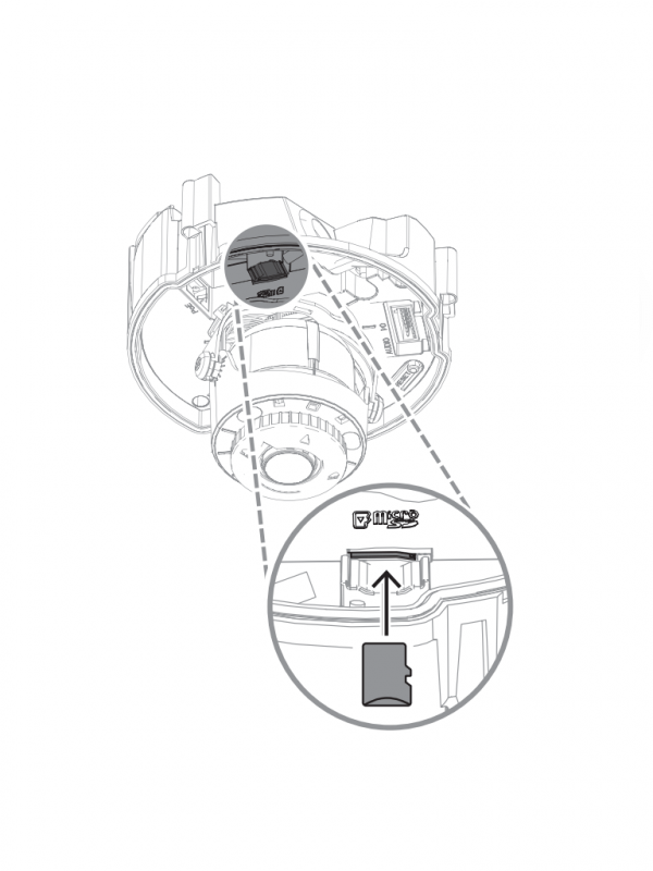Inserte una tarjeta de memoria en la ranura para tarjeta para almacenar una grabación con alarma local de hasta 2 TB. La grabación previa a la alarma en la RAM reduce el ancho de banda de grabación en la red y amplía la vida efectiva de la tarjeta de red.