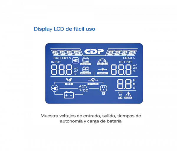 CDP UPO11-2 – UPS ONLINE de 2000VA / 1800W / 4 Terminales de salida / Baterias 12V a 9AH X 4 / Respaldo de 5min en carga completa