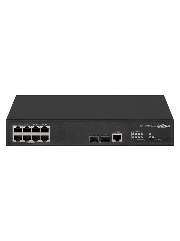 DAHUA DH-AS4300-8GT2GF- Switch Gigabit administrable de capa 2 con 8 puertos10/100/1000 Base-T y2 ranuras SFP d 1Gbps. Ofrece una capacidad de switching de 20Gbps y viene con una robusta carcasa metálica, ideal para redes de alto rendimiento
