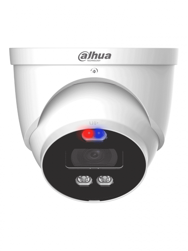 DAHUA DH-HAC-ME1809HN-A-PV – Camara Domo TiOC 4k/ Disuasión Activa/ Iluminador Dual Inteligente + FullColor/ Estrobo con Luz Roja y Azul/ Lente de 2.8mm/ 106 Grados de Apertura/ 40 Metros de IR y Luz Visible/ Microfono Integrado/ IP67/