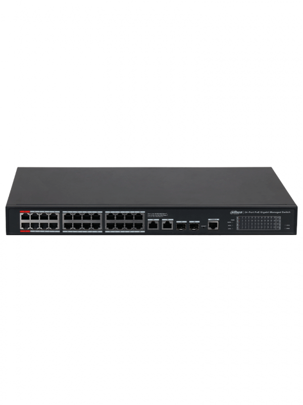 DAHUA DH-S4228-24GT-240 Switch PoE Gigabit Administrable con 24 puertos PoE, ideal para transmisión de larga distancia (hasta 250 m), perfecto para redes de Capa 2