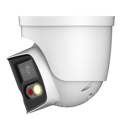 DAHUA IPC-PDW3849-A180-AS-PV Cámara IP WizSense Eyeball con multivisión en dos sensores de 4MP, ofreciendo un ángulo de 180°. Con IR de 25 m, LED de 20 m, disuasión activa, ePTZ, micrófono, altavoz, y protección IP67.