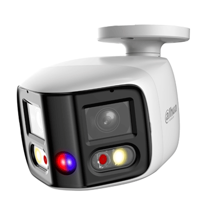 DAHUA IPC-PFW3849S-A180-AS-PV Cámara IP Bullet WizSense 2x4MP con visión de 180°, MultiVision, LED IR 25m y luz cálida 20m. Disuasión activa con micrófono dual y altavoz integrado, EPTZ, SMD 4.0, PoE, IP67, y ranura MicroSD. Ideal para seguridad avanzada.