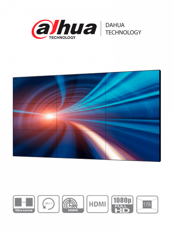 Dahua LS460UCM-EF – Pantalla Full HD para Videowall de 46 Pulgadas/ Panel LCD ADS Industrial 24/7/ Marco Ultra Delgado de 3.5mm/ Soporta Daisy Chain (Conexión HDMI en Cadena)/ Interfaces HDMI, DVI, VGA, BNC y USB/ Brillo 500 cd/m2/