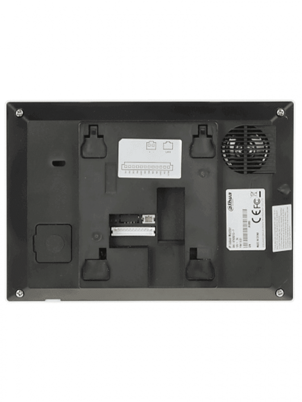 DAHUA VTH2621G-P – Monitor IP táctil de 7″ en negro, Serie Lite, ideal para interiores. Soporta PoE estándar, hasta 4 cámaras de entrada y 4 monitores adicionales. Incluye modo No Molestar, 6 entradas/salidas de alarma, y compresión H.265.