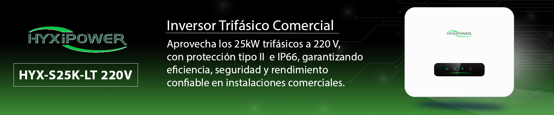HYXIPOWER HYX-S25K-LT 220V – Inversor de cadena trifásico comercial, Potencia de Salida 25,000 W, Protección contra sobretensión tipo II, Indice de Protección IP66, Administración remota