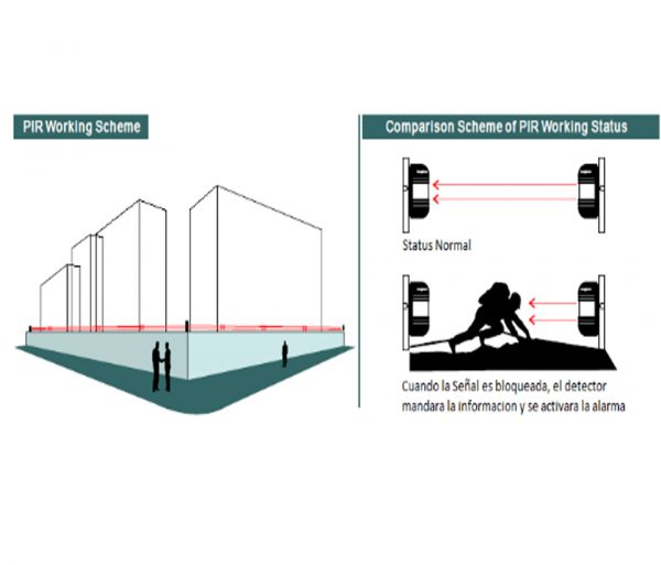 El este detector infrarrojo de iHorn modelo ABT60 activo consta de dos haz de luz, construidos con tecnología inteligente, con una sensibilidad ajustable de 50 a 250 m/s, puede ser adaptable para diferentes entornos.