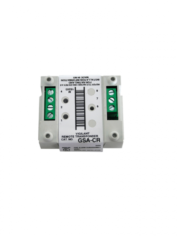 El GSA-CRR / MCRR El módulo de relé de inversión de polaridad proporciona un contacto de relé seco de forma “C” para alimentar y activar una serie de bases de sirena audible GSA-AB4G. Al recibir una orden del controlador de bucle Signature, el GSA-CRR invierte la polaridad de su salida de 24 V CC, activando así todas las bases sonoras en el bucle de datos.