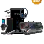 Incluye un UPS CDP de 1000VA para proteger y alimentar los equipos, junto con periféricos de alto rendimiento como teclado, mouse, audífonos y micrófono gaming.