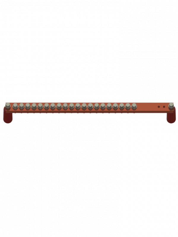 Barra de tierras fabricada en cobre electrolítico de alta pureza, cuenta con perforaciones para realizar hasta 20 conexiones.