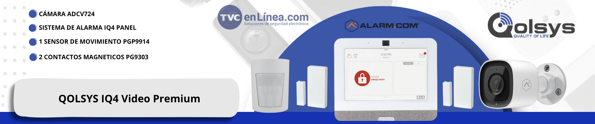 QOLSYS IQ4 Video Premium – Paquete que contiene Sistema de Alarma IQ 4 POWER G ONLY , con pantalla táctil de 7″, Power G 915 Mhz 1 sensor PIR inalámbrico PGP9914, 2 sensores magnéticos inalámbricos PG9303 y Cámara exterior alarm.com ADCV724