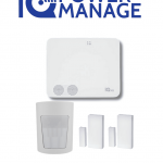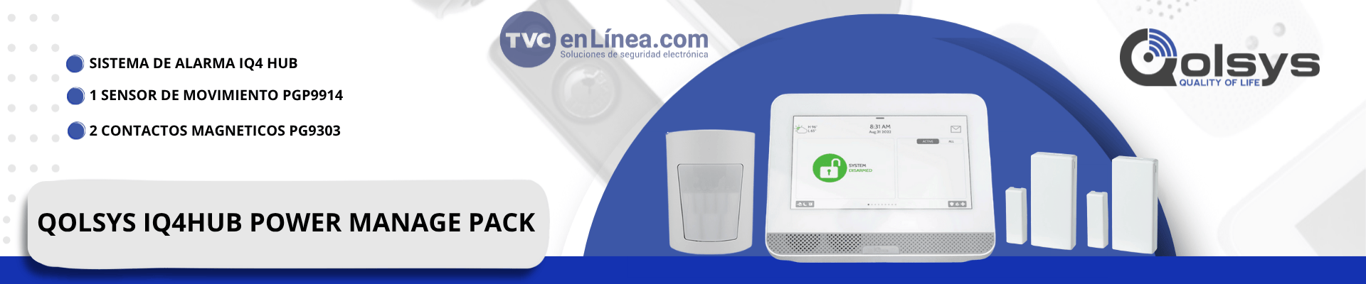 QOLSYS IQ4HUB POWER MANAGE PACK – Paquete que contiene Sistema de Alarma IQ4 HUB autocontenido, con pantalla táctil de 7″, 1 sensor PIR inalámbrico PGP9914 y 2 sensores magnéticos inalámbricos PG9303