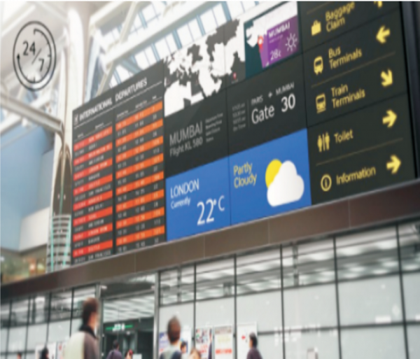 Con un panel DID intensamente iluminado, su mensaje siempre está en el destacar. Su alto nivel de brillo y contraste aclaran la pantalla y legible en público. De hecho, en promedio es 1,5 veces más brillante que la televisión