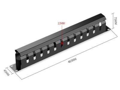 El organizador de cables modelo CO-24P está fabricado en acero laminado en frío con un espesor de 1.2 mm, utilizando un proceso de moldeo integrado que le otorga gran resistencia y durabilidad. Su diseño con esquinas redondeadas evita daños en los cables durante el tendido y asegura un uso seguro y confiable.