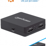 El divisor o splitter HDMI de Saxxon con amplificador de señal, 2 salidas, te permitirá enviar audio y video digital a dos pantallas al mismo tiempo desde una sola fuente, ya sea de un Blu-Ray, DVD, consola de videojuegos o un decodificador satelital o de cable.