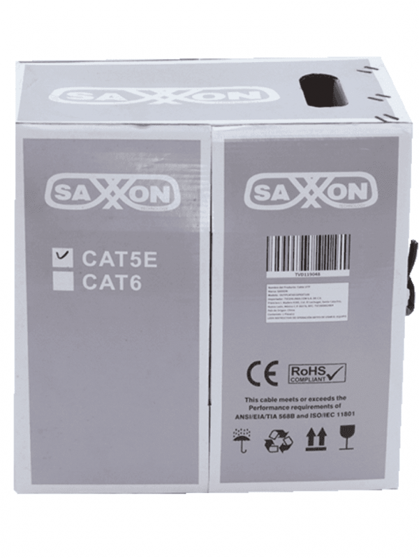 SAXXON OUTPCAT5ECOPEXT100 – Bobina de 100 Metros de Cable UTP Cat5e 100% Cobre/ Exterior con Doble Forro/ Color Negro/ Ideal para Cableado de Redes de Datos y Video/