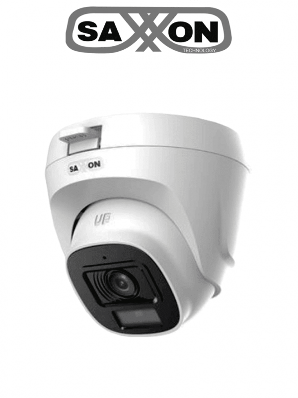 SAXXON SUA-HAC-T20P-0280B- Cámara Turret de 2 Megapíxeles/ Lente de 2.8 mm con Visión de Apertura de Hasta 100°/ Policarbonato/ IR de Hasta 20m / Fácil Instalación/ Ideal para Interiores