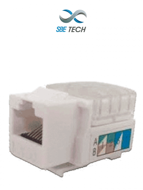 Módulo Jack Categoría 6, 8 posiciones, RJ45, cumple con los requerimientos para trabajar redes LAN a 1Gb/s 1000BASE-T, montaje fácil y rápido en paneles de parcheo y placas de pared SBE TECH, excelente para aplicaciones VoIP y PoE.