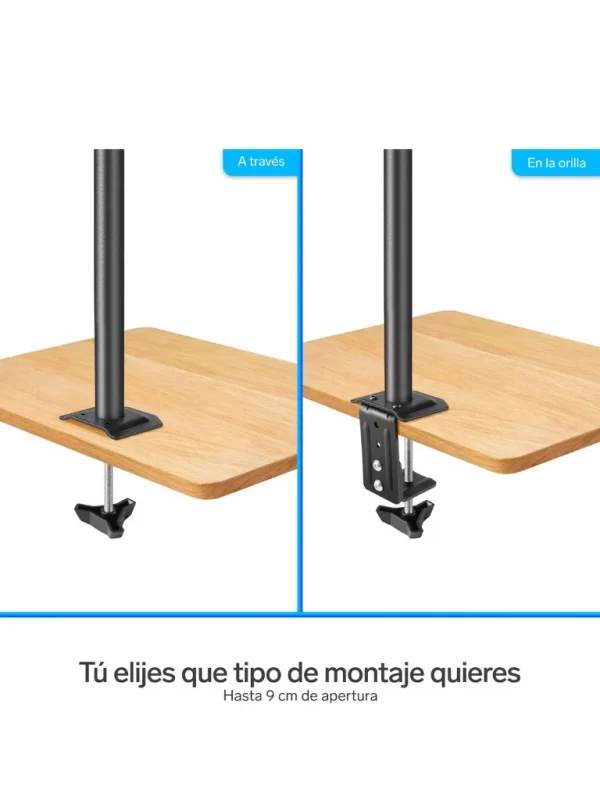 Ideal para monitores LED, LCD y otros modelos con estándares VESA, proporcionando estabilidad y adaptabilidad en configuraciones de escritorio.
