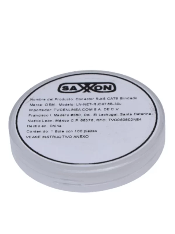 - Bote con 100 plugs RJ45 Cat6 blindados modelo TCE LN-NET-RJCAT6B-30u.