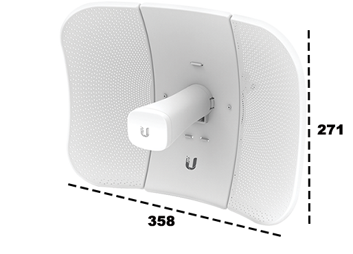 - El LiteBeam AC montado en el exterior con el reflector instalado proporciona cobertura exterior direccional (la ganancia depende del reflector)
