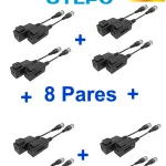 UTEPO UTP101PHD6PAK4 – 4 pares de transceptores pasivos HD, diseño para empalmes ordenados, distancias CVI: 720p a 300m, 1080p a 250m, 4MP a 200m, 4K a 150m