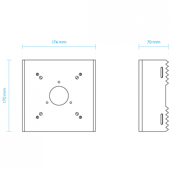 - Dimensiones: 170 (P) x 174 (An) x 70 (Al) mm