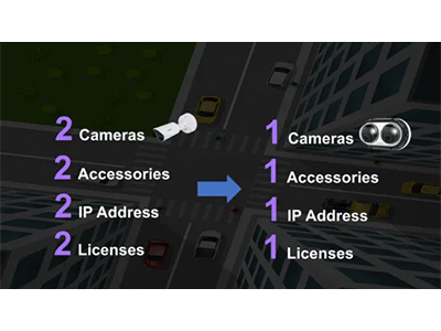 Gracias a su amplio campo de visión, la cámara de IA panorámica bidireccional ofrece una cobertura integral que elimina los puntos ciegos y reduce la necesidad de usar múltiples cámaras.