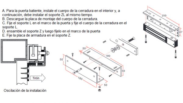 YLI MBK280ZLW – Sopote en ZL para instalacion de cerradura magnetica YM280WS para uso en exteriores