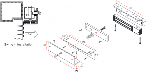 Las cerraduras electromagnéticas son una de las mejores elecciones si se desea un control de acceso profesional, el tipo de puerta y el sentido en que abre en ocasiones complica el uso de electroimanes, es por esto que YLI cuenta con la más amplia variedad de accesorios y en esta ocasión les presentamos el accesorio YLI YM350ZL, Para instalar en puertas que abren hacia adentro, en aquellos casos que se requiera proteger el electroimán con una instalación interior, éste deberá colocarse sobre puesto en la pared arriba del marco de la puerta en la esquina opuesta a las bisagras, y un soporte en “Z”