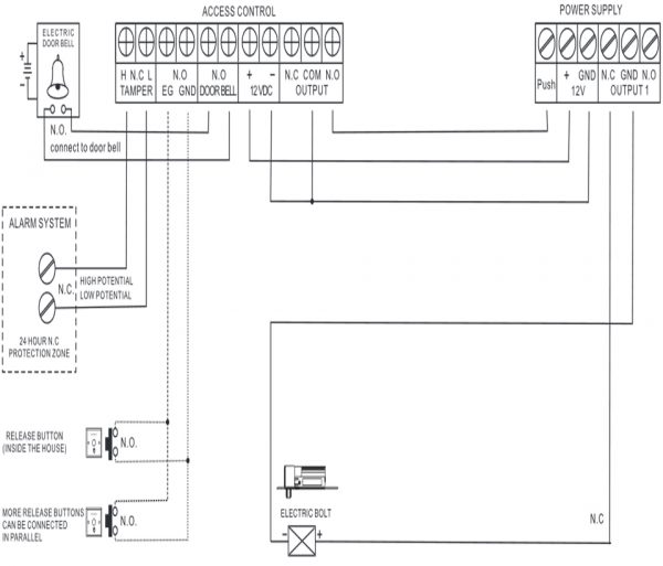 - El contacto del botón de salida de apertura de la puerta de acoplamiento óptico incorporado se bloqueará automáticamente si la puerta no se abre en 5 segundos.