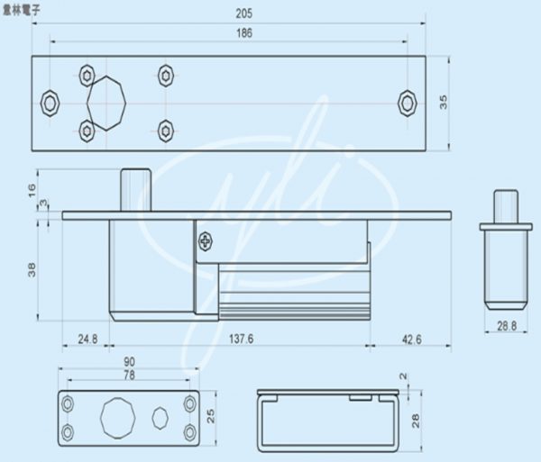 - Tamaño del cuerpo de la cerradura – Longitud 205x ancho 35x espesor 40 (mm)