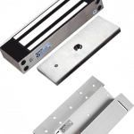 Paquete de cerradura magnética dual de la marca YLI modelo YM180NDLEDPACK, con fuerza de sujeción de 350 lb incluye soporte de fijación en Z y L / Alimentación a 12 VDC.