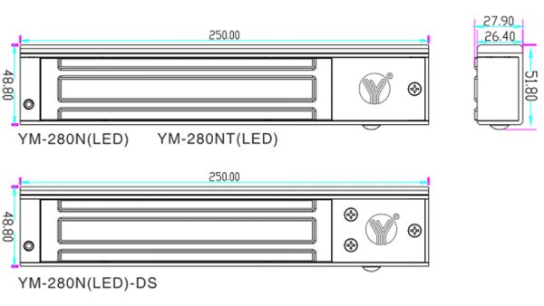 YLI YM280NLEDPAK – Paquete de Cerradura Magnética YM280N con Led y Soporte de Fijación tipo ZL / Fuerza de Sujeción 280kg (600LB) / Para puertas de madera, vidrio y metálicas