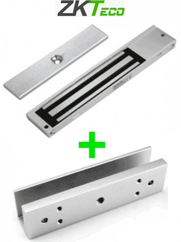 ZKTECO LM200LEDSU – Paquete de contrachapa magnética de 200 Kg a 12 VDC con señal NC que incluye soporte en U para colocación en puertas de vidrio