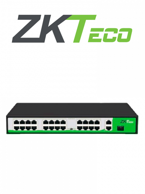 ZKTECO PE242300C – Switch de 24 Puertos Fast Ethernet PoE , Estándar AF – AT , 2 Puertos RJ45 10/100/1000M + 1 Puerto SFP*1000 , PoE+ hasta 30W por puerto , 250 mts sobre UTP CAT 6