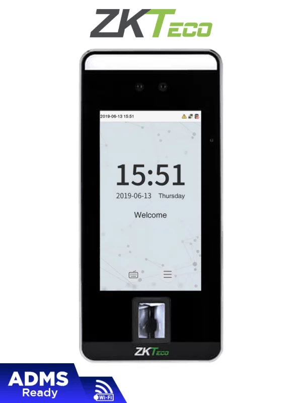 ZKTECO SpeedFaceV5LPWIFI – Control de Acceso y Asistencia Visible Light con Autenticación Facial (6000 Rostros), Huella Digital BioID+ (6000), Tarjeta ID 125 KHz, Soporta 200,000 Eventos y Conectividad TCP/IP o WiFi